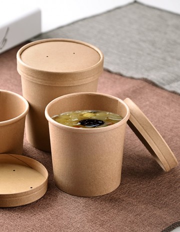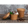 These Kraft containers are made of high quality cardboard and can be used for both cold and hot food. These containers are ideal for soups, stews, pasta, salads, boiled cereals, as well as for ice cream, nuts, dried fruit and other products. Freeze resistant and not deformed. These containers can be supplemented with a 2-ply paper lid with holes for condensate and steam to escape or without holes. It seals the container and maintains the desired temperature. It is possible to apply branded print.