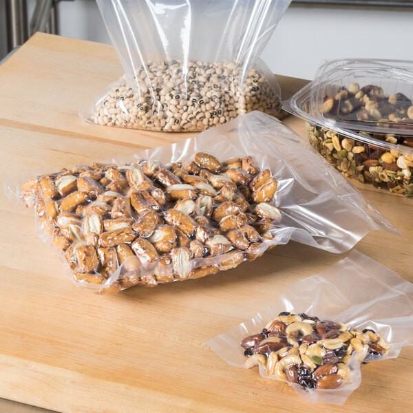 For chamber vacuum sealers. External (suction) sealers typically require embossed/channel bags.